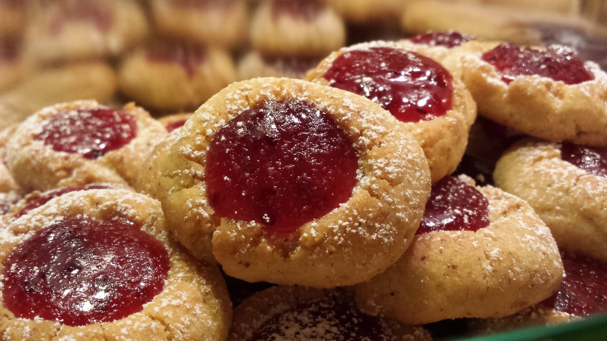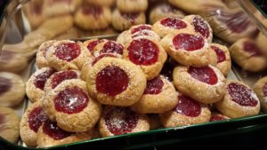 Husarenkrapferl mit Johannisbeergelee. Schmecken auch mit Schwarzkirsch-Konfitüre. Der Mürbeteig ist prima im Thermomix zuzubereiten. Hätte ich gar nicht gedacht. Bitte dran denken, dass der Teig zwei Stunden im Kühlschrank ruhen muss. Den Backofen auf 220 Grad vorheizen und später die Krapferl bei Ober-/Unterhitze backen.