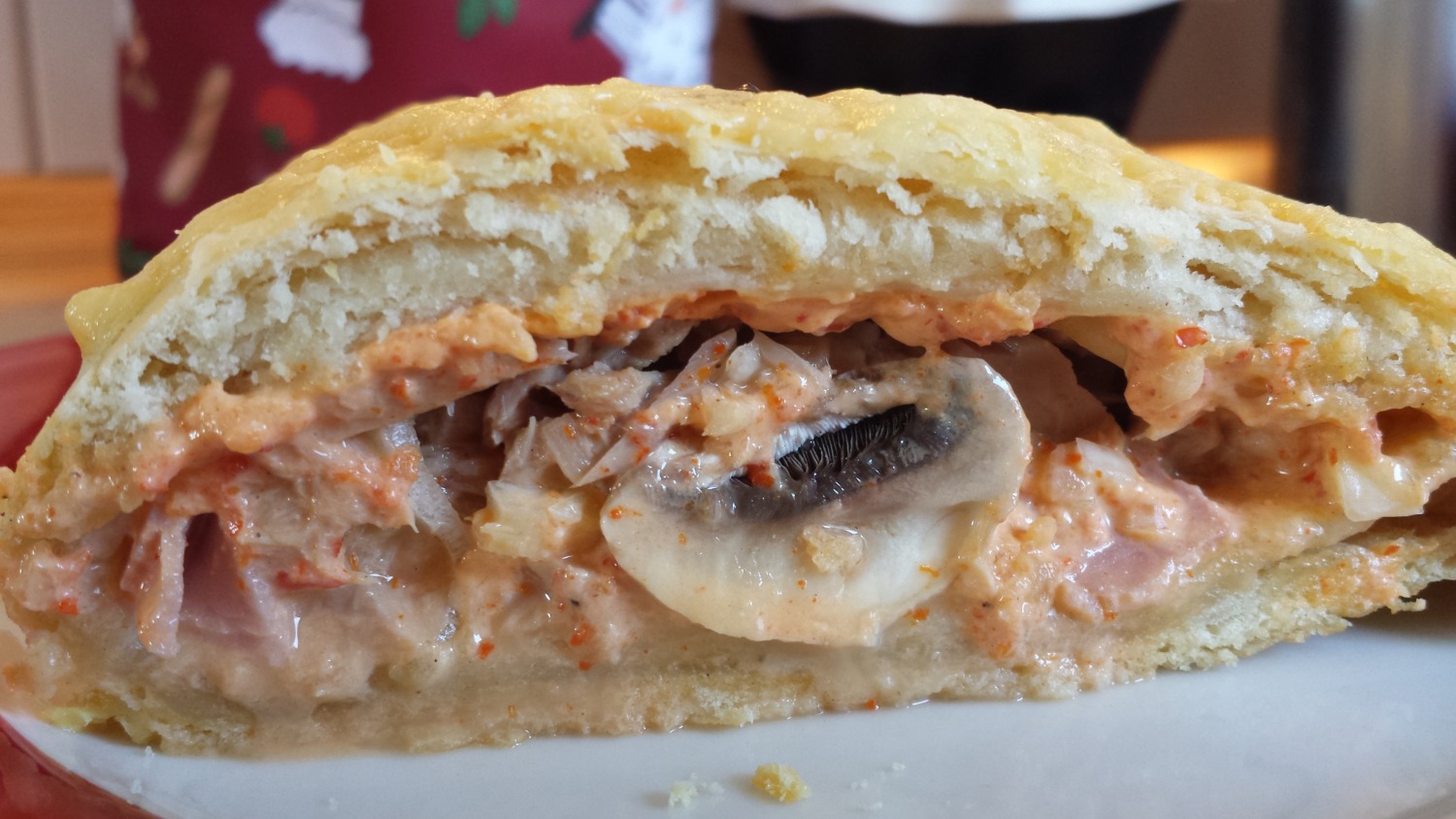 Optisch und geschmacklich wahrlich kein Highlight. Aber, wie war nochmal mein Lieblingsspruch? Nichts ist so schlecht, als dass es nicht für irgendetwas am Ende noch taugen könnte. Und wenn diese mittelprächtige Calzone jetzt einfach noch für einen Freitagnachmittag-Lückenfüller herhält, dann hat sie doch ihre sinnvolle Bestimmung gefunden, oder? Friede ihrer Asche…