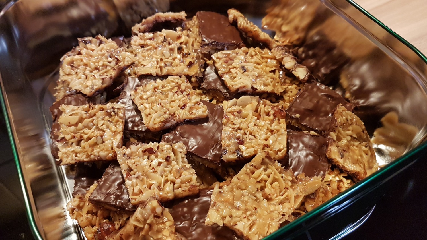 Zum heutigen Weihnachtsgebäck: Ich habe mich dann mal an Florentiner begeben. Geschmacklich wirklich allererste Sahne, aber die Verteilung mit der Schoki ist eine echte Quaserei (sauerländischer Ausdruck für Schmiererei). 😅