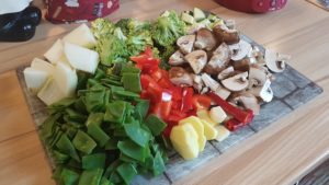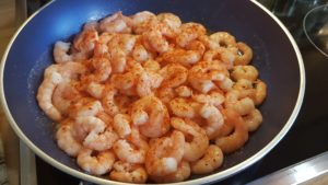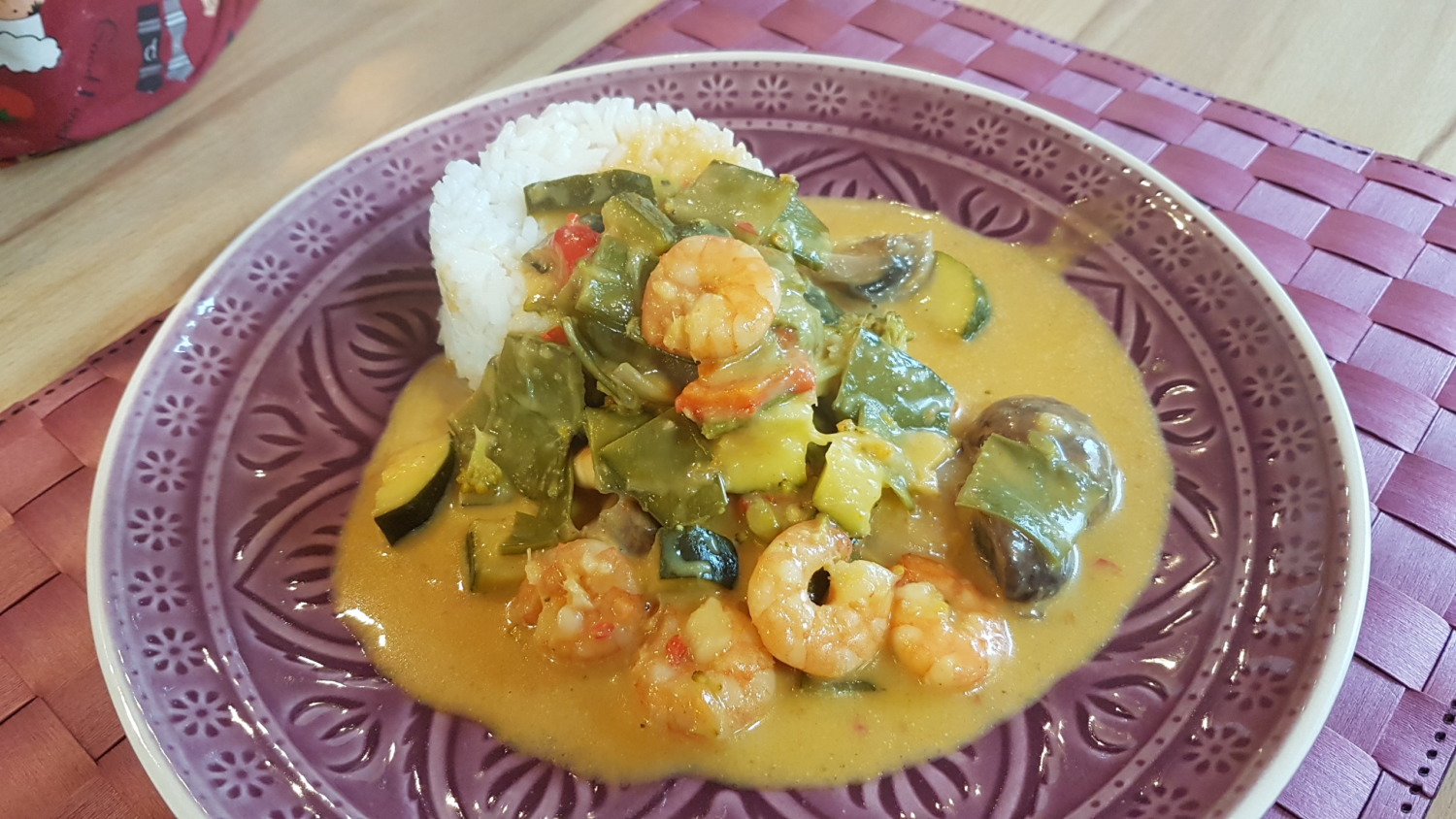 Die Garnelen könnt Ihr natürlich austauschen, wenn sie Euch nicht gefallen. Hühnchen- oder Putenfleisch ist ebenfalls gut geeignet oder gleich vegetarisch. Geht auch.