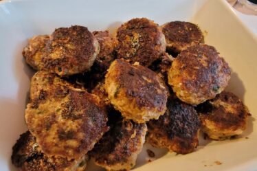 Die Bratwurstbällchen habe ich durch Hackfleisch ersetzt und die Champignon-Sahne-Sauce aus dem grünen Grundkochbuch (S. 156) geklaut.