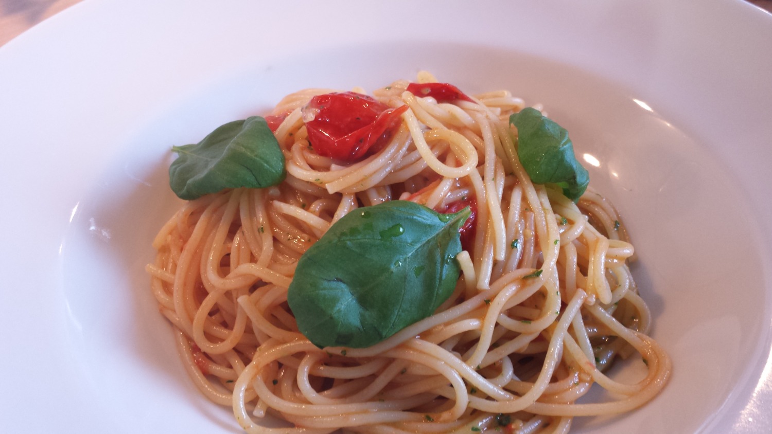 Mein getestetes Gericht Spaghetti aglio, olio e pomodorini war einfach nur traumhaft. G Mauro hat es direkt aus einem italienischen Kochbuch übersetzt. Wirklich klasse gemacht. Das müßt Ihr unbedingt auch mal nachkochen. Absolut empfehlenswert!