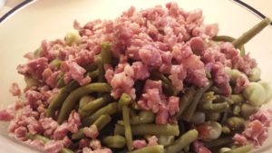 Umso erstaunlicher, dass ich jetzt so auf Bohnen stehe. Der Geschmack ändert sich offensichtlich mit zunehmendem Alter. Gottseidank, denn sonst wäre ich niemals in den Genuss von Birnen, Bohnen und Speck gekommen. Göttliches Zeugs. Die süßen Birnen dazu, einfach ein Geschmackserlebnis.
