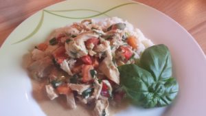 Lecker war es dann trotzdem. Ralf meinte, ich müsse das Gericht unbedingt nochmal zubereiten. Er war völlig begeistert. Na, ich weiß nicht, von Hähnchen im Thermi hab ich erstmal die Nase gestrichen voll…