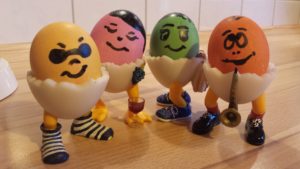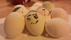 Wie gut, dass im damals keine Osternester für Kids geplant waren, die armen Hascherl hätten beim Anblick der Horror-Ostereier den Schock fürs Leben bekommen und schlimmstenfalls vielleicht noch einige Jahre andauernde Osterfest-Phobie durchleben müssen.