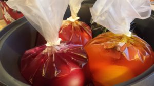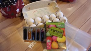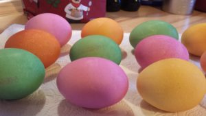 in diesem Jahr werde ich am morgigen Karfreitag unsere Ostereier auch wieder voll altmodisch mit Kaltwasserfarben färben und auf jeden Fall ganz normal im Töpflein kochen.