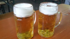Stellt Euch vor: Wir sitzen zwei Stündchen vorher hoch droben auffm Berg in einer gemütlichen Gaststätte. Ein lecker gezapftes Helles vor uns und schauen in die Speisekarte. Geilomat. Die haben hier Weischwürschtel und Brez’n. MEINE Lieblingsbretzen! Mönsch, die hatten wir ja noch gar nicht in unserem Urlaub. Endlich. Hammer. Haben. Essen. Sofort.