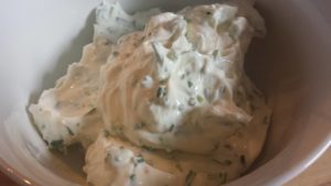 Bisken Lachs und Frischkäse-Knoblauch-Dip dazu – einfach genial!