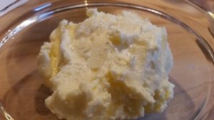 Aus 200 ml Sahne (durchschnittlich im Discounter umme Ecke um die 35 Cent) habe ich 60 g Butter erzeugt. Nach Adam Riese und Eva Zwerg brauche ich dann um 250 g reine Butter herzustellen? Rischtisch, rund 800 ml Sahne. Summasummarum grob 1,45 Euro Kosten für mein selbstgemachtes Erzeugnis. Plus die daraus gewonnene Buttermilch. Selbstredend! Strom und Arbeitsleistung lassen wir jetzt mal locker unter den Tisch fallen…![]()
