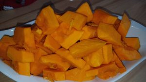 So. Essen fassen. Es gibt die im Text schon angesprochene Kokos-Kürbiscreme-Suppe. Etwas nachgewürzt, mit zwei Löffeln Stärkemehl angedickt und mit Orangensaft aufgepeppt wirklich sehr sehr lecker und meine heutige Empfehlung des Tages!