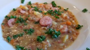 Nun zu meinem Linseneintopf heute: Also ich persönlich komme ja eigentlich auch mit einem Tellerchen Linsen aus. ![]()