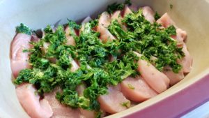 Die Putensteaks waschen, trockentupfen und in den Zaubermeister bzw. Topf mit Deckel legen. Bärlauch waschen, ebenfalls trocken tupfen und 5 Sekunden/Stufe 7 mixen.