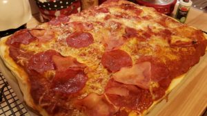 Die Pizza hab ich schlussendlich, wie ihr sehen könnt, mit lecker Kochschinken, Salami, Serranoschinken und Büffelmozzarella belegt. Mjam. Mjam.