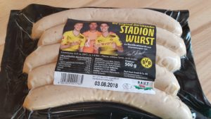 Es tut mir leid. Ich hoffe sehr, meine lieben Dortmund-Fans, dass diese Bratwurst jetzt doch nur ein lustiger Werbegag ist und Ihr die nicht wirklich in Eurem Signal Iduna Park essen müsst.