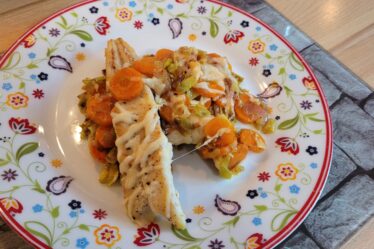 7. Final noch einmal 2 Minuten/90 Grad/Sanftrührstufe. Die Soße dickt noch einmal nach.