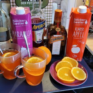 Dem Gatten gelüstete es heute nach einem Heißgetränk mit Cointreau, eigentlich sein Lieblings-Schuss im Glühwein, aber ich wollte unbedingt einen Hot Aperol trinken.
