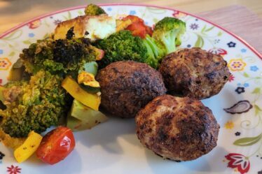 Dazu schmeckt Kräuterquark sehr gut. Als Fleischbeilage gab es bei uns saftige Nackensteaks.