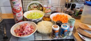 1. Zuerst kümmern wir uns um die Vorbereitungen. Karotten und Staudensellerie schälen und waschen. Anschließend in feine Würfel schneiden. Die Gemüsezwiebel schälen und ebenfalls in kleine Würfel schneiden.