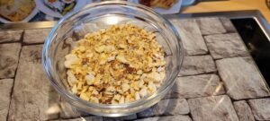 Alle Streuselzutaten in den Mixtopf geben und 9 Sek./Stufe 6 zu Streuseln vermischen und umfüllen. Im Kühlschrank temporär zwischenparken.
